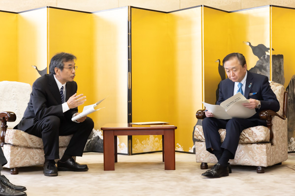 水源環境保全・再生かながわ県民会議の土屋俊幸座長から「かながわ水源環境保全・再生施策 大綱期間終了後の取組に関する意見書」を受け取りました。