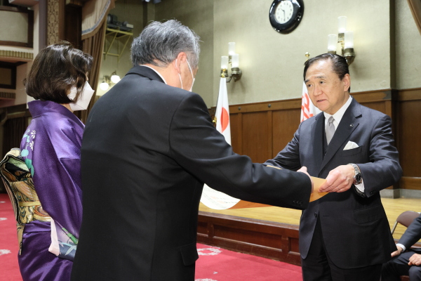 この伝達式は、県内の「地方自治」や「厚生」の分野で長年にわたり第一線でご活躍され、我が国最高の栄典である勲章を受賞された方をお祝いするものです。