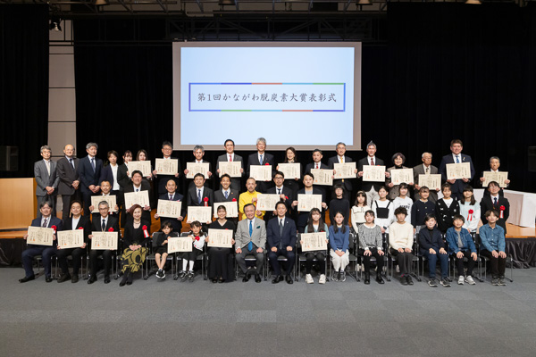 かながわ脱炭素大賞は、神奈川県と株式会社テレビ神奈川との共催により、県内で脱炭素に関する優れた取組を行った個人や事業者、学校などの功績を称える表彰制度で、今回が栄えある第1回目の表彰となります。