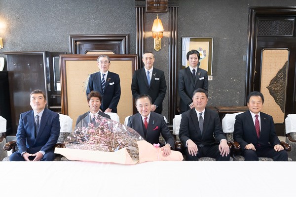 本日、神奈川県花き園芸組合連合会 JAセレサ川崎花卉部馬絹支部の皆さんから、ひな祭りに向け、出荷がピークを迎えている花桃をいただきました。堂々とした美しい枝物で、一足早く春が来たようでした。