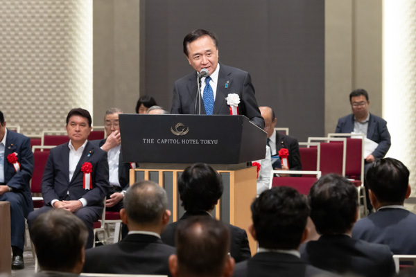 リニア中央新幹線の沿線の自治体や経済団体などで構成されている「リニア中央新幹線建設促進期成同盟会」の総会が都内で開催され、同盟会の副会長として挨拶をしました。