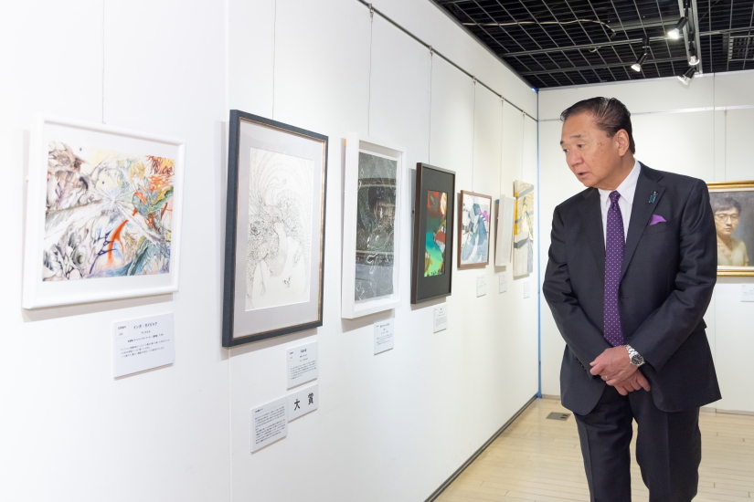 私も、1つ1つ作品を鑑賞し、知事賞の作品を選ばせていただきました。作者1人1人の世界観が描き出されている作品は、それぞれの個性が光っており、選ぶのは本当に大変で、とても悩みましたが、一番印象に残った、ベイさんの「冬の空」にしました。