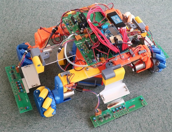 マイクロコンピュータを用いたロボット掃除機の製作 多種多様なセンサを取り付けることで、部屋の壁や段差等を感知して回避し、自動で掃除をするロボットを製作しました。 |