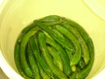 はじめに10kgのキュウリを使ったとすると下漬けのキュウリは6.5kgくらいになっています。これに1.1kgの塩を使って漬け替えると、均一になったときには塩分濃度が23%くらいになります。水に塩を溶かすと、最高で25%くらいまで溶けますが、これ以上、通常の状態で溶かすのは困難で、塩は結晶のままとなってしまいます。25%近い濃度になると微生物の生育には厳しい環境となるので、キュウリの保存が可能になるのです。