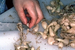 手入れをするとき、ラッキョウの塩味を確認して下さい。外側は早く塩が抜けますが、内側の塩は徐々に抜けていきます。塩味がわずかに残っているところで塩出しは終了します。