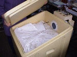 種付けを終えたら、発酵機に取り込みますが、このときの温度は製麹方式によって若干の違いがあります。発酵機を利用するときは取扱説明を良く読んで、温度管理をして下さい。ここで利用した発酵機の場合は35℃以上で取り込むと、温度を下げるためのファンがまわり、蒸米の乾燥が進み、蒸し米がカリカリに乾いてしまいます。