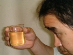 | (1)濾紙上の残渣を指先でつぶして、その溶け具合を調べ、米の蒸しの良否、こうじのハゼ込み状態の良否を判定する。