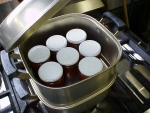 (5)所定時間の加熱を終えたらすぐにフタを締め直し、ビンを逆さにおく。