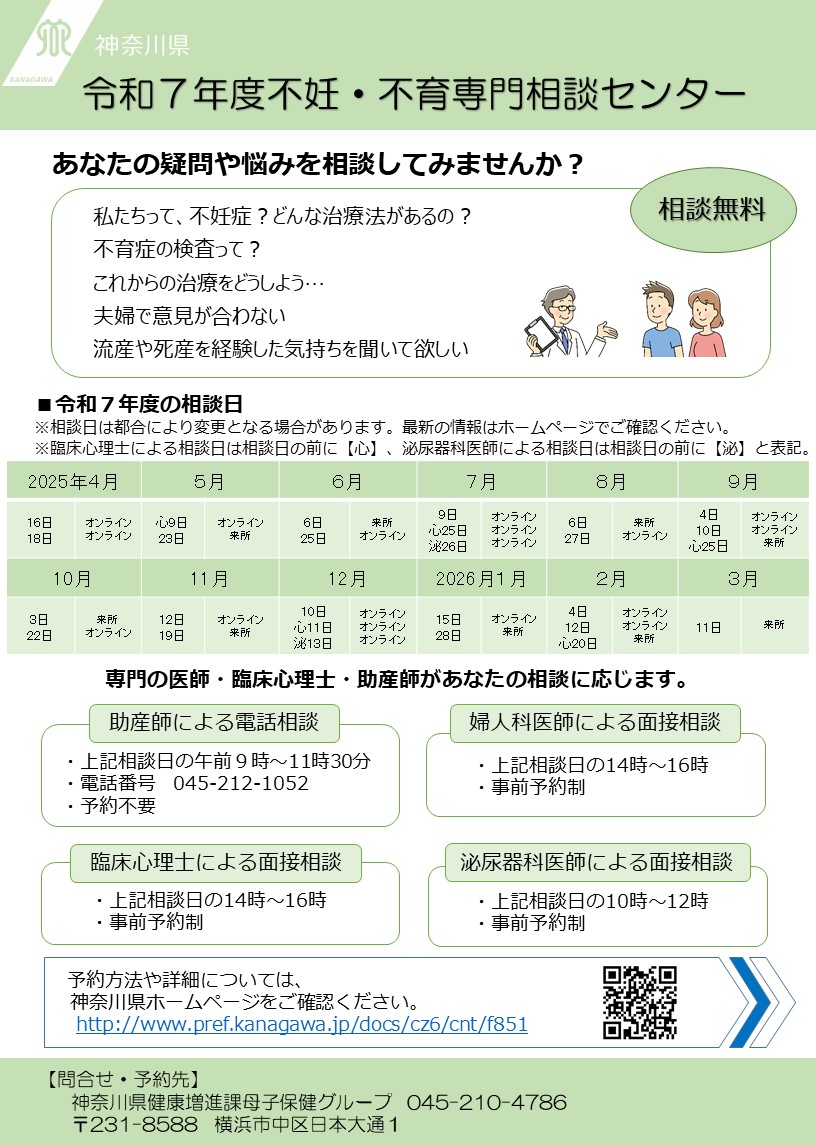 神奈川県不妊・不育専門相談センターについて紹介しています。相談日をご確認ください。