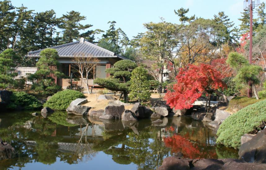 「昭和」発祥の地。園内には「葉山しおさい博物館」や茶室、松林等もある