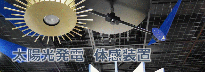 太陽光発電の仕組みや特徴を、頭の上にある太陽をイメージした装置の光を太陽光パネルが付いたレシーバーで受けて、【体感型のゲーム感覚】で学べます。
