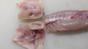 次の例示は、ふぐの処理が不完全なものであり、「ふぐ営業の認証」を受けた施設において、「ふぐ包丁師」が取り扱わなければなりません。