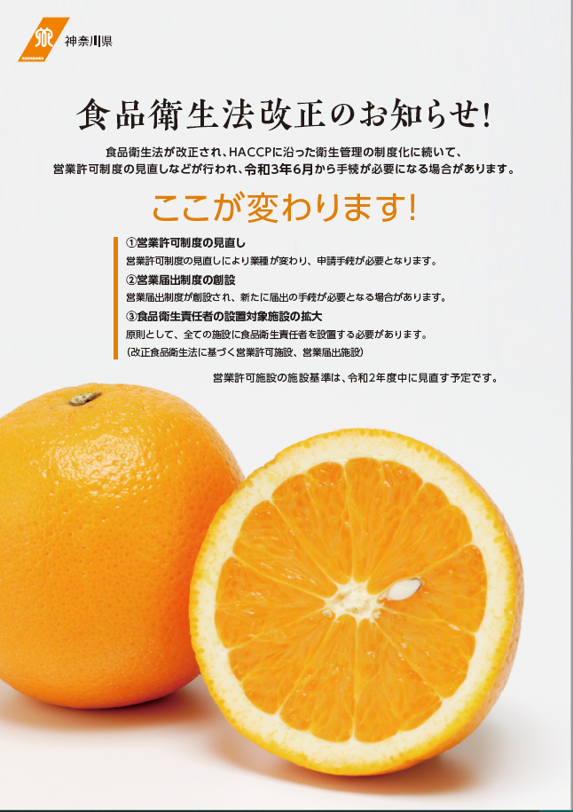 ホーム > くらし・安全・環境 > 身近な生活 > 食の安全・安心 > かながわの食の安全・安心 > 食品衛生法改正のお知らせ > 食品衛生責任者を設置してください!