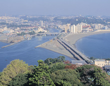 かつては道路も無く、江の島に参詣する人たちは砂州上を歩き、木橋を渡ってました。今は広い道路ができて、江の島大橋と江の島弁天橋がかかっています。