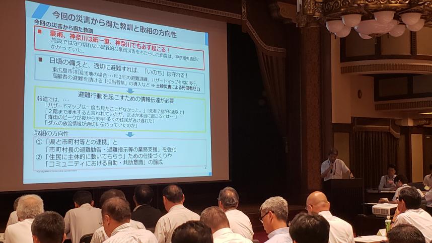 ※平成30年7月豪雨の発生を受け、水害および土砂災害に係る減災対策を総合的に議論するため、水害に関する「神奈川県大規模氾濫減災協議会」と土砂災害に関する「総合土砂災害対策県・市町村調整連絡会」を合同で開催しました。