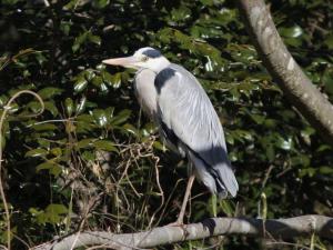 青みがかった灰色の羽が特徴の大型のサギです。池で魚やザリガニを狙っている姿がよく見られますが、近づくと「グワッ、グワッ」と鳴きながら飛び立ってしまいます。冬は白いダイサギとのツーショットも見られます。