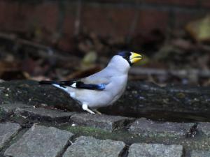 太く黄色いくちばしが特徴です。冬はよく群れになり、エノキなどの堅い木の実を食べています。ペンチのようなくちばしで実を割るパチパチという音が聞こえてきます。