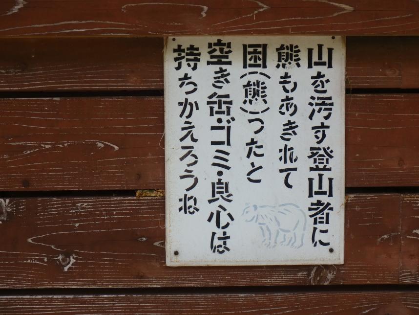 「あなたは 美しい山を守る人 汚れた山を作る人 空き缶・ゴミ・良心は持ち帰ってね」