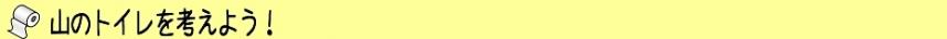 ※やむをえず野外で用を足す場合も(登山用語では「キジ撃ち」「お花摘み」と言います)、環境への負荷が少ない方法を考えましょう。