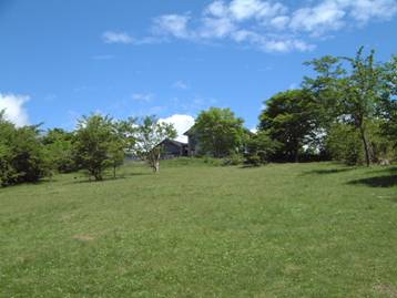 子供が遊べるよう、緩やかな傾斜がついた広い原っぱになっています。晴れた日には、外輪山が見えます。