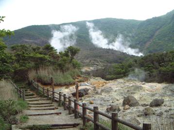 延長約700メートルの散策路で、噴煙地の間近を歩くことができます。