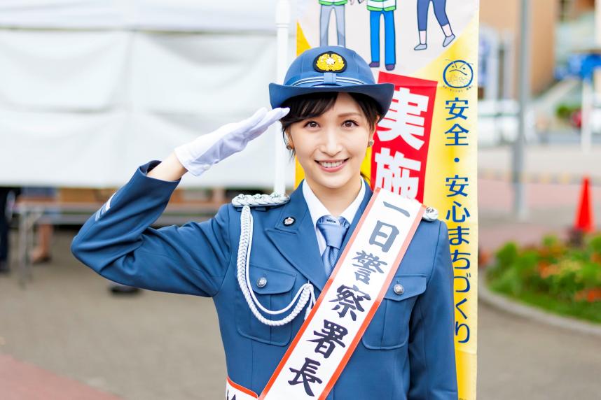 本出陣式では、一日伊勢佐木警察署長としてタレントの横山ルリカさんをお迎えし、安全・安心まちづくり宣言や防犯トーク、ご来場の皆さまとのじゃんけん大会などを行い、会場は大いに賑わいました。