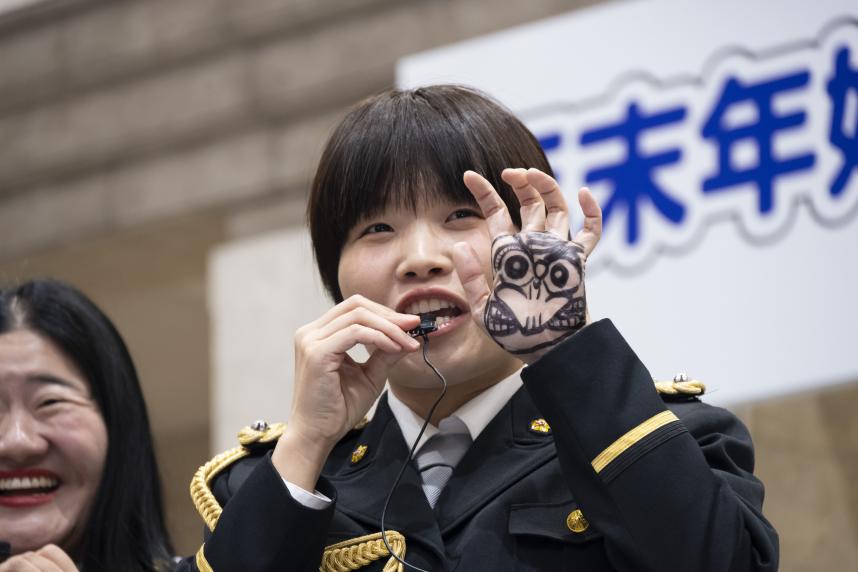 当日は、お笑いコンビ「ガンバレルーヤ」さんに「一日防犯大使」を委嘱し、県民の皆様が年末年始を安全で安心して過ごせるように、笑いを交えた啓発を行いました。また、シンガーソングライターの佐久間彩加さんによるミニライブ、神奈川県警察音楽隊によるコンサートを行い、会場は多くの方で賑わいました。