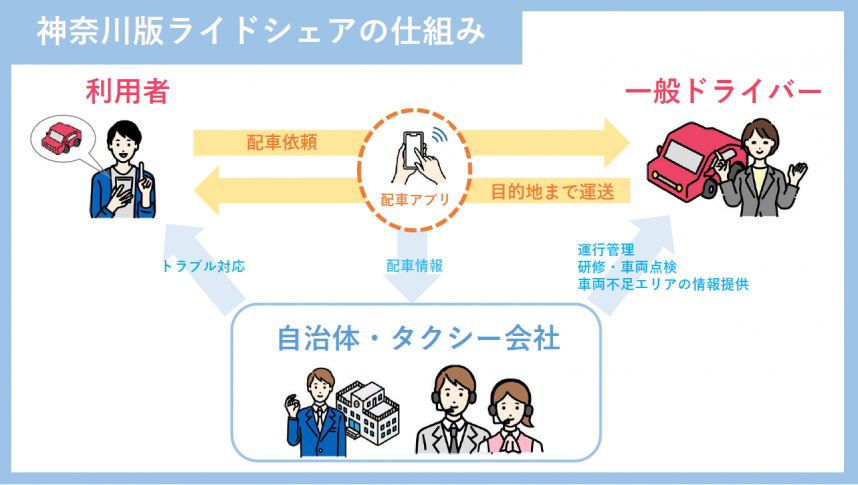 神奈川の「かな」とライドシェアの「ライド」を合わせ、シンプル、かつ、覚えやすいものとしましたので、今後はぜひ「かなライド」と呼んでください。