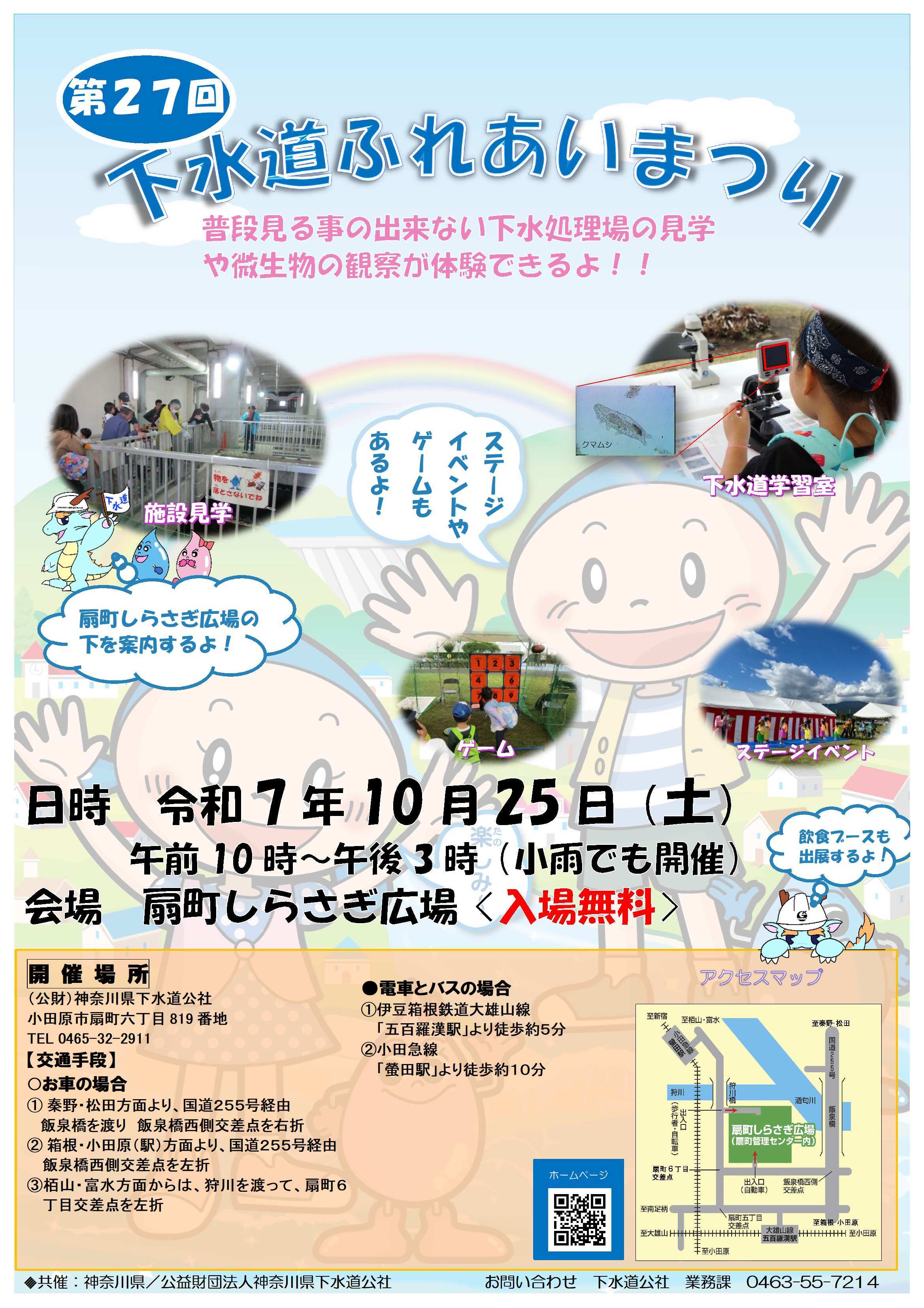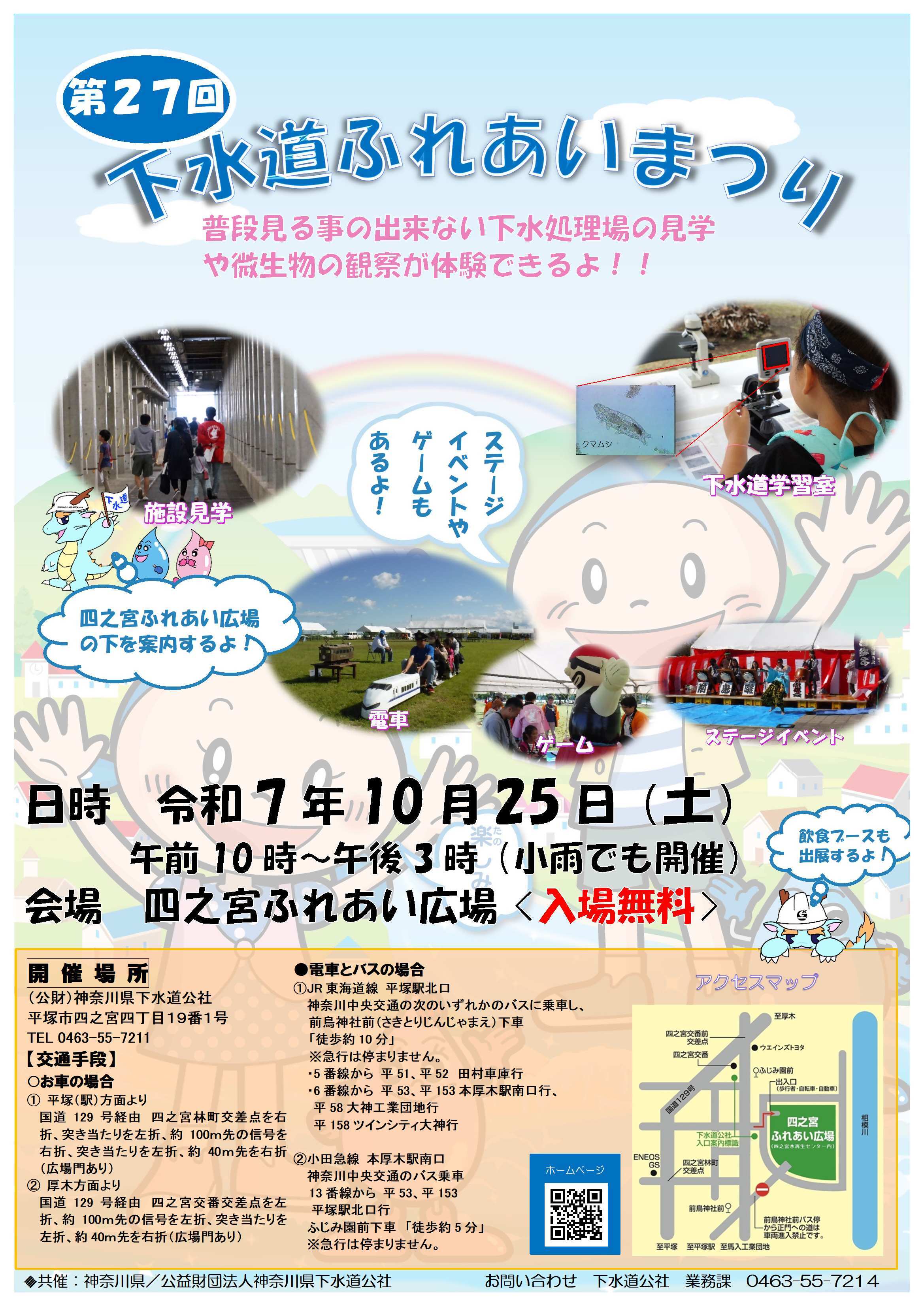 神奈川県では、下水道の役割や下水道整備の重要性などについて、皆様の理解を一層深めていただくため、「下水道ふれあいまつり」を(公財)神奈川県下水道公社と共催で開催しています。