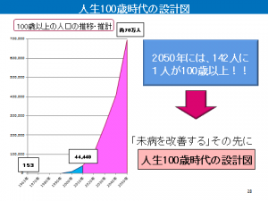 100歳が当たり前の時代がやってくるんですね。100歳が当たり前ということを我々はむしろ加速していこうとしているわけですよね。