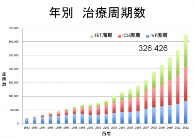 ところで、不妊治療は万能ではありません。皆さんは不妊治療があるからどんな状況でも妊娠できると思っていませんか? そんなことはないんです。これが日本の不妊治療の数ですが、最近は32万件。すごく多いです。アメリカ合衆国は人口が日本の2倍であるのに、17万件しか治療していない。だから人口比で考えるとアメリカの4倍、日本は不妊治療を行っている不妊治療大国なのです。
