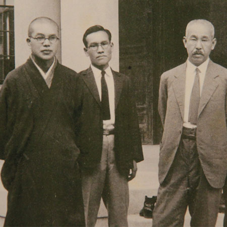 金沢文庫発足時当時の様子(左から、称名寺住職・小林憲住、司書・熊原政男、金沢文庫長・関靖)