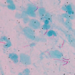 結核菌(チール・ネールゼン染色により赤く染まった部分)