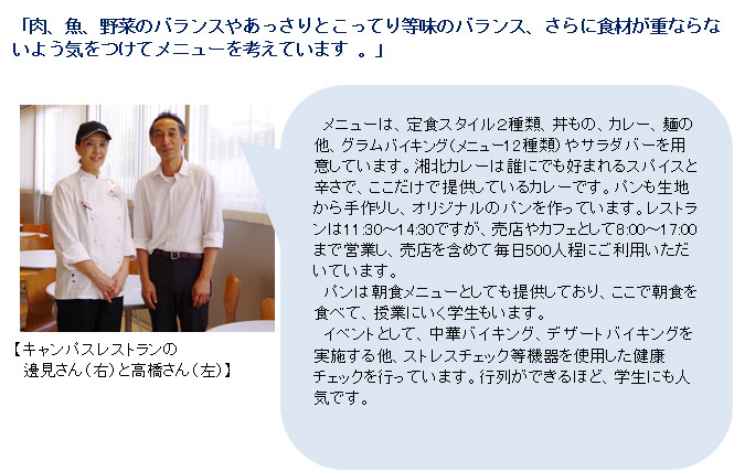 神奈川県厚木地区の大学の学生食堂を紹介するページ