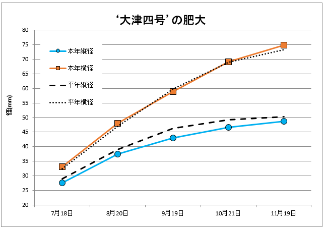 神奈川県農技セ足柄研究課ほ場における令和6年度カンキツ・キウイフルーツ肥大状況