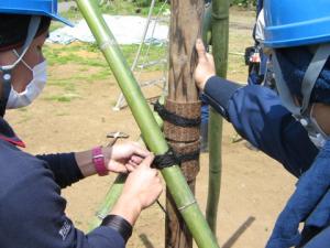 移植に伴う根巻作業をしています。 四ツ目垣を制作しています。   資格取得の為の実習です。