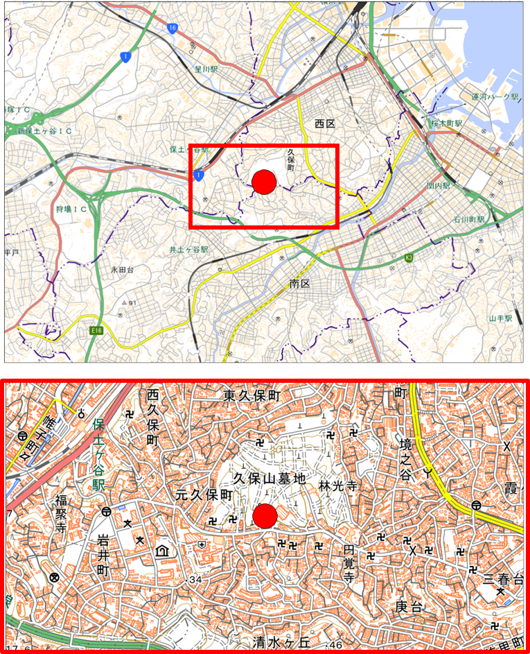 西区元久保町にある久保山墓地は、JR横須賀線「保土ケ谷駅」南東約800mにある横浜市営の墓地です。