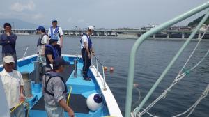 海区漁業調整委員会の視察(左画像)西部漁港事務所による海中構造物の点検(右画像)