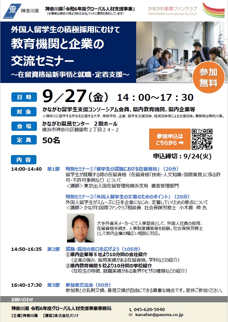 対象:かながわ留学生支援コンソーシアム会員、県内教育機関、県内企業 等