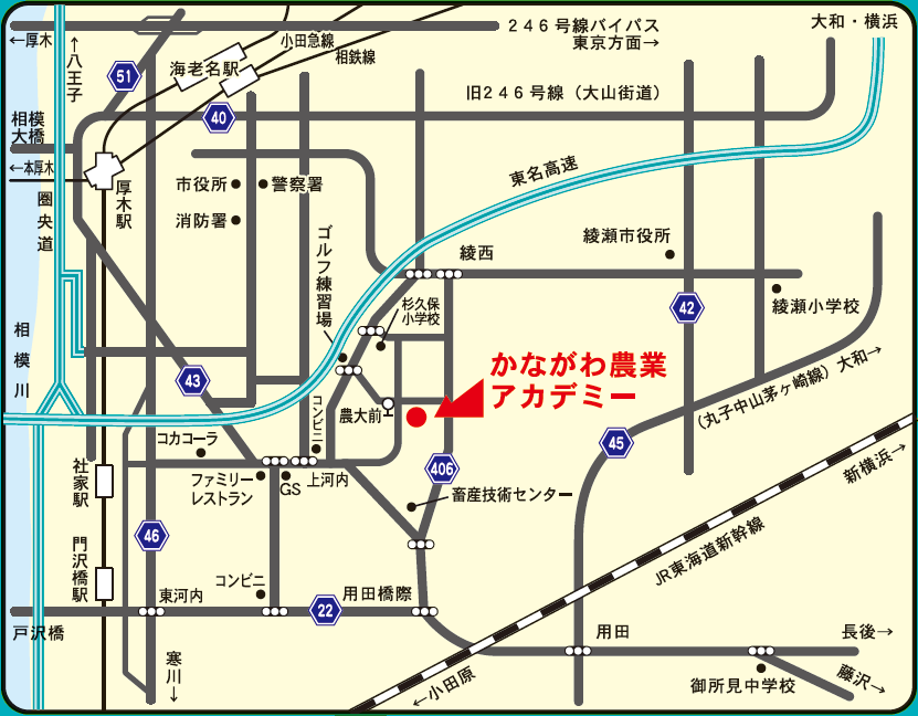 カーナビに入力する場合は、相鉄バスのバス停「農大前」で登録してください