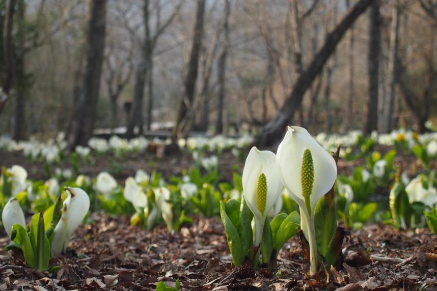 箱根湿生花園は、湿原をはじめとして川や湖沼などの水湿地に生育している植物を中心にした植物園です。園内には低地から高山まで、日本の各地に点在している湿地帯の植物200種のほか、草原や林、高山植物1100種が集められ、その他、珍しい外国の山草も含め、約1700種の植物が四季折々に花を咲かせています。園路は低地から高山へ初期の湿原から発達した湿原へと順に植物を見てまわるようになっています。3月下旬からは、約2万株のミズバショウを楽しめます。
