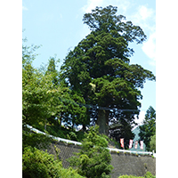 形が箒に似ている大杉です。高さ45m、根回り18mであり全国名木百選、国の天然記念物、かながわ未来遺産100に指定されています。推定樹齢は神奈川県内最高齢の二千年と言われています。周辺からは湧水も出ています。