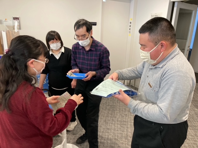 ともしびショップ県庁店の皆さんによる 県庁職員へのTシャツ販売の様子