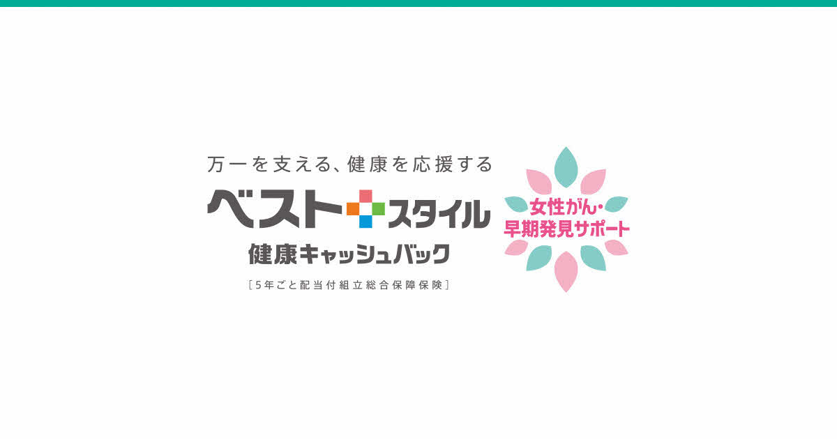 ※「ベストスタイル健康キャッシュバック 女性がん・早期発見サポート」は、「ベストスタイル」に「健康サポート・キャッシュバック特約(2021)」「がん検診支援給付金付女性がん保障特約(2023)」を付加した場合の販売名称です。
