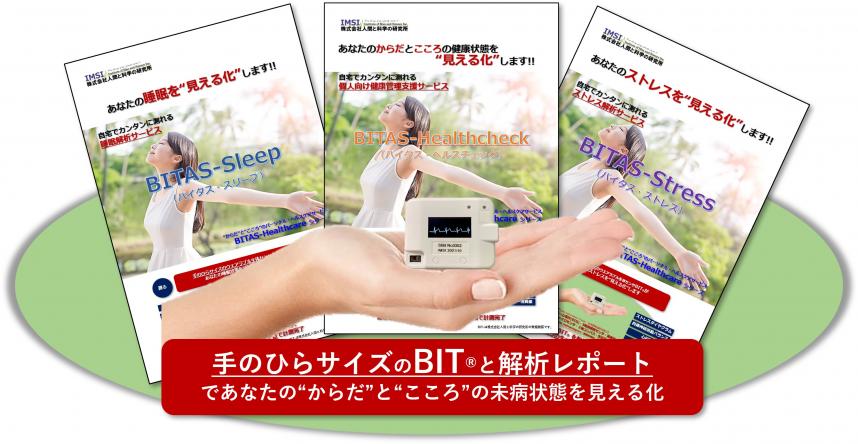 | 9 | ウェアラブル生体センサBIT®及び解析サービス | 株式会社人間と科学の研究所 | 心拍・呼吸・からだの姿勢 | からだとこころの健康状態、睡眠の状態(質・睡眠時無呼吸)、ストレスの状態 | ||