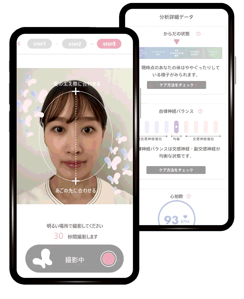 | 24 | mamaniere(ママニエール) | 株式会社ポーラ | 顔動画分析 | 現時点の体の疲労傾向度や、心の状態(自律神経バランス)、心拍数レベル | ![]() |