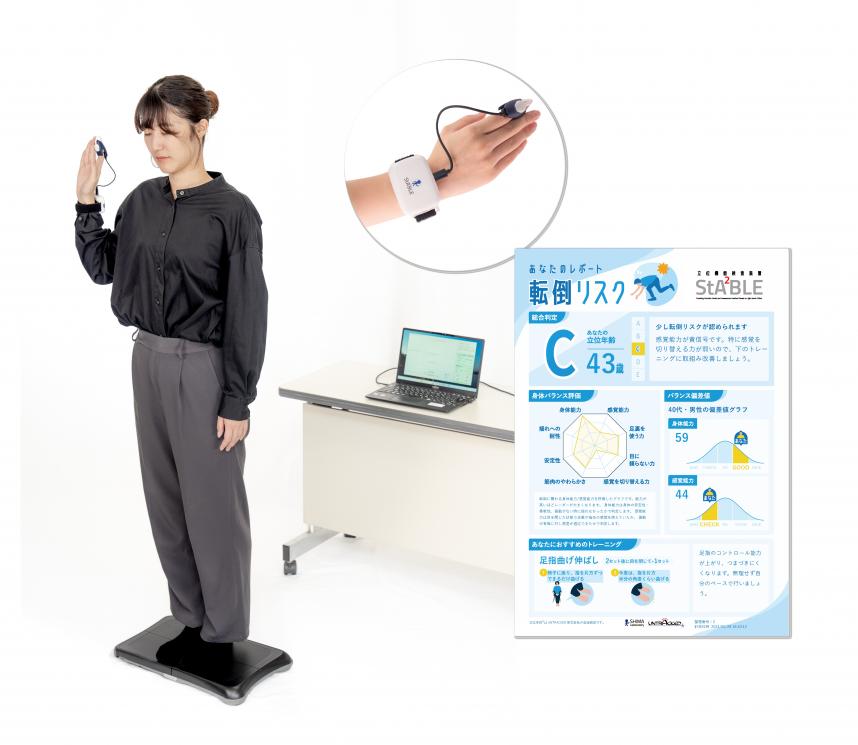 | 15 | 転倒リスク計測装置StA²BLE | UNTRACKED株式会社 | 指先に付ける専用デバイスと重心動揺計 | 転倒リスク/立位年齢 | ![]() |