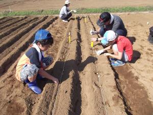 だいこんのタネまき機体験(手動式) キャベツの苗の定植体験