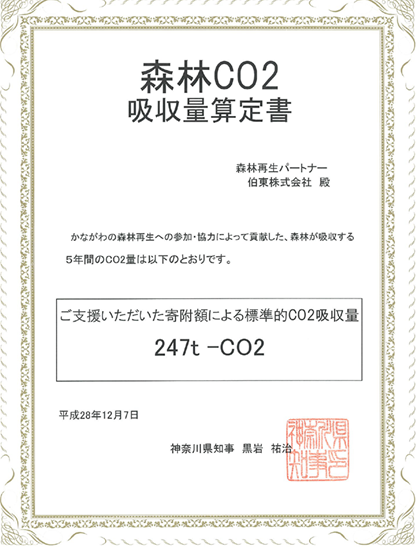 森林CO2吸収量算定書 ご支援の内容から算定した標準CO2算定書を発行