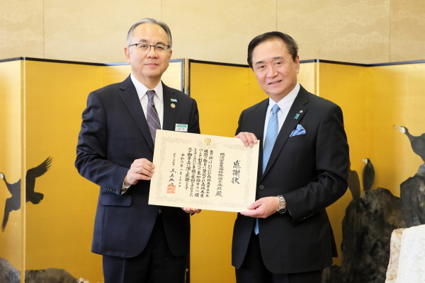 このたび、「かながわ水源の森林づくり」事業にご賛同いただき、ご寄附をいただきました明治安田生命保険相互会社に対して感謝の意を表すため、知事から感謝状を贈呈しました。